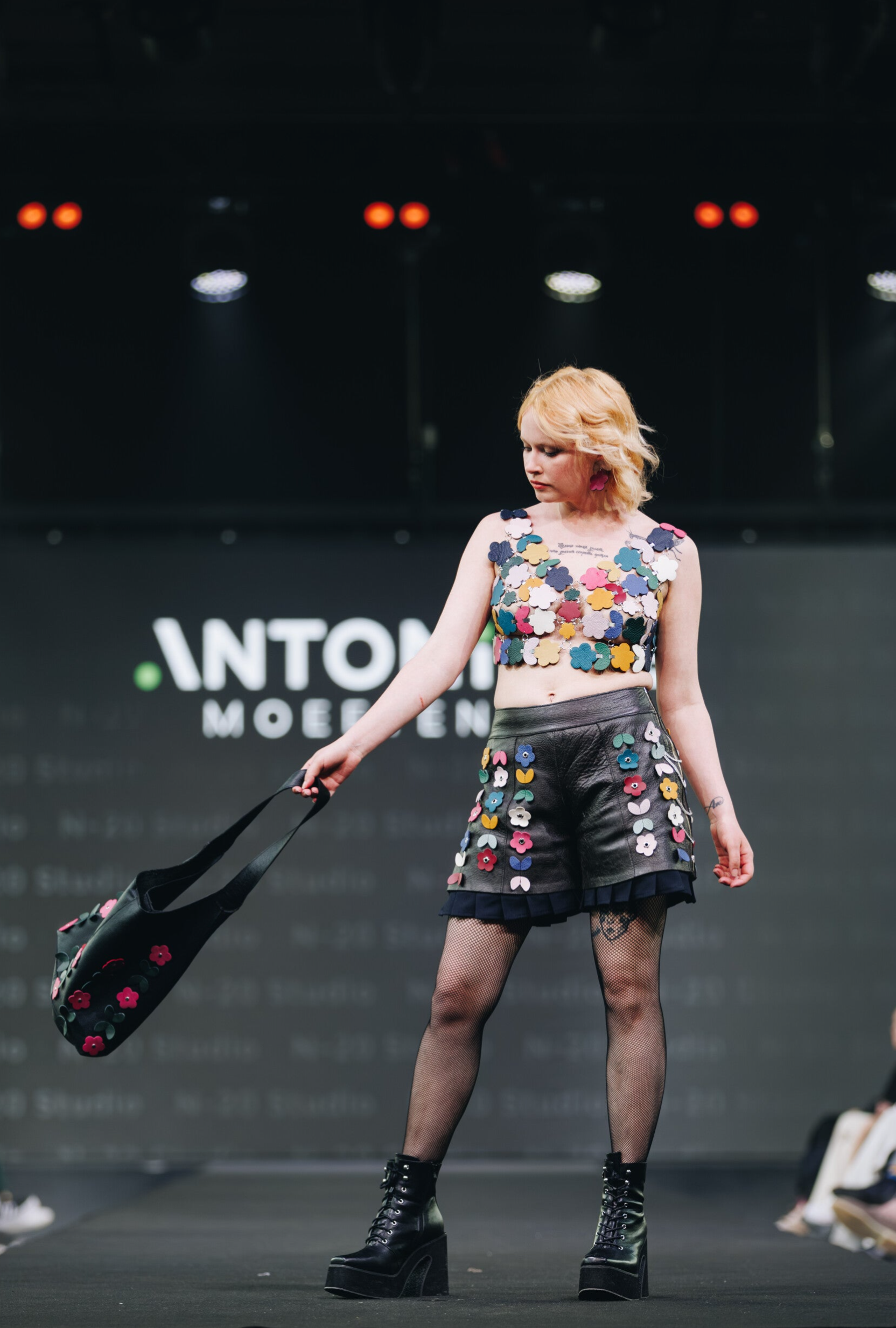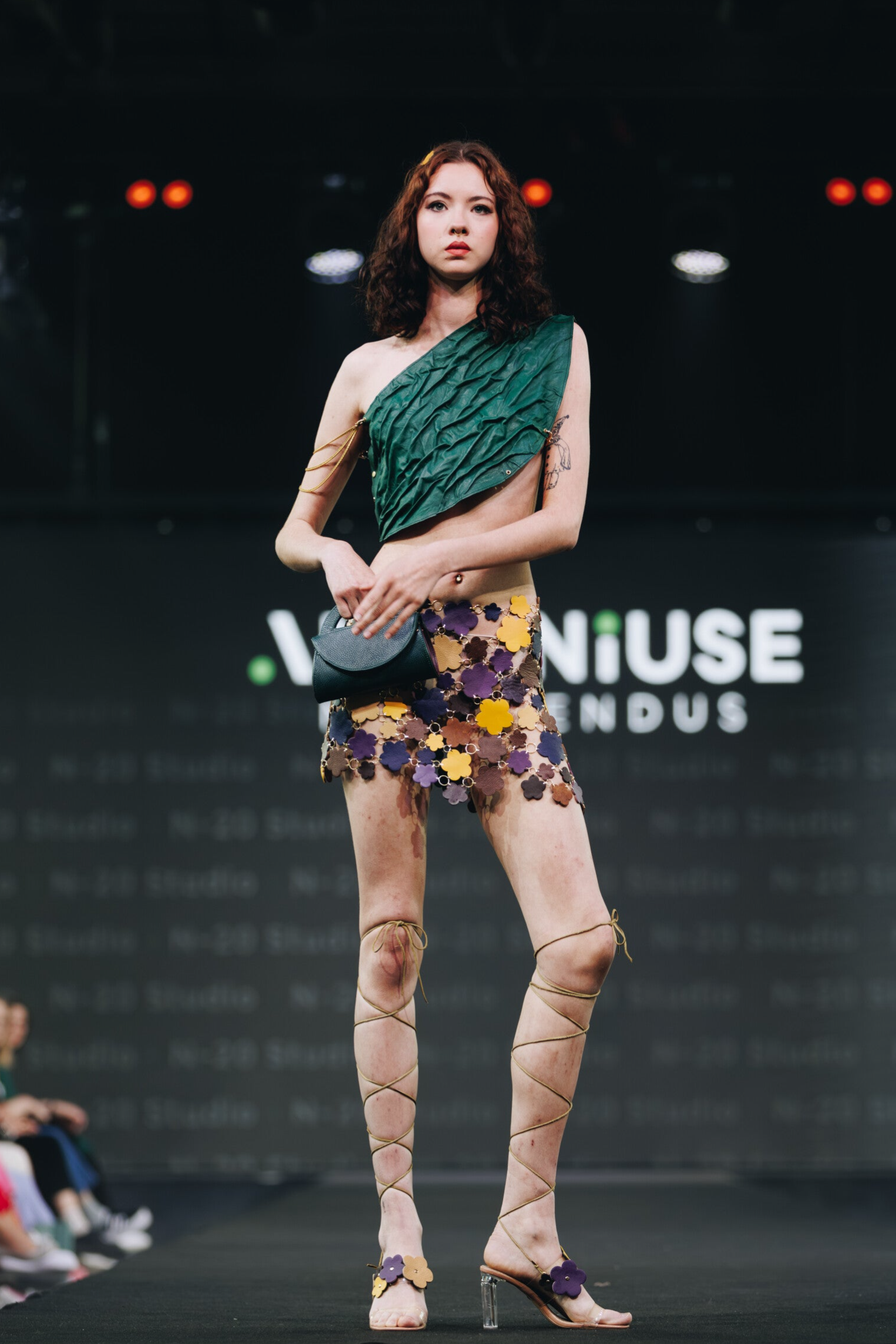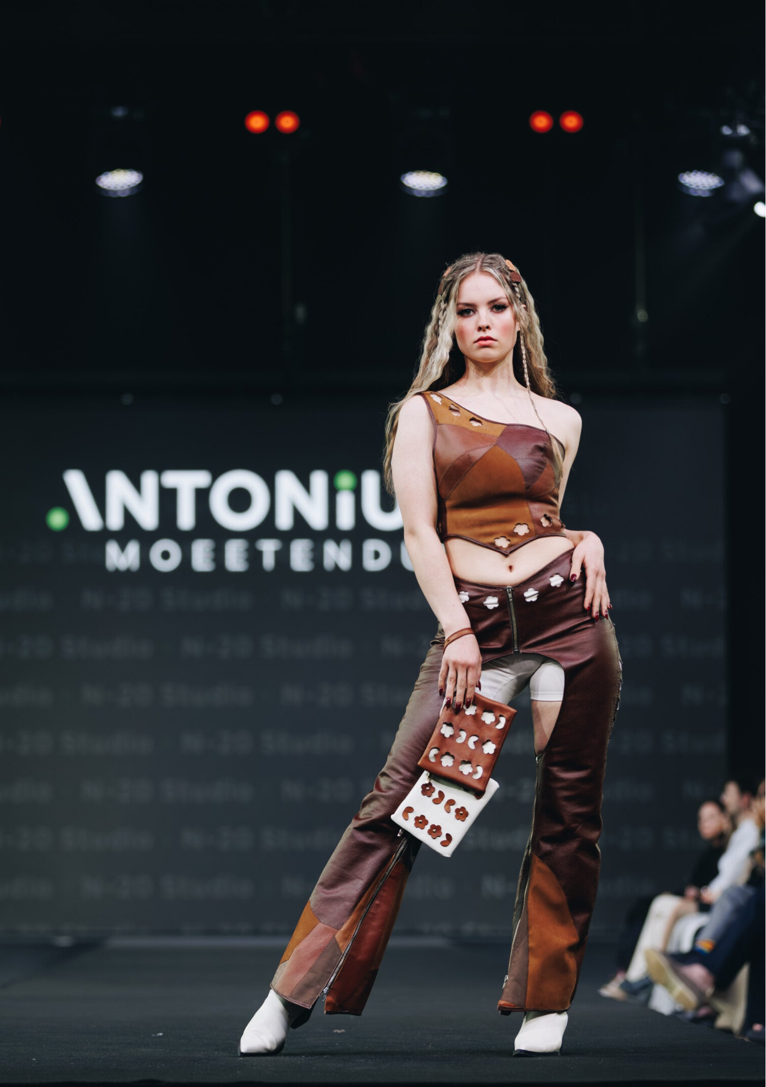 Valmis kokku 12 omanäolist komplekti. Kollektsiooni keskmes olid siiski nahast valminud rõivad - kleidid, seelikud, püksid, vestid ja topid. Komplektide täiustamiseks erinevad nahkaksessuaarid - kotid, kaela-, kõrva- ja juukseehted ning redisainitud jalanõud.